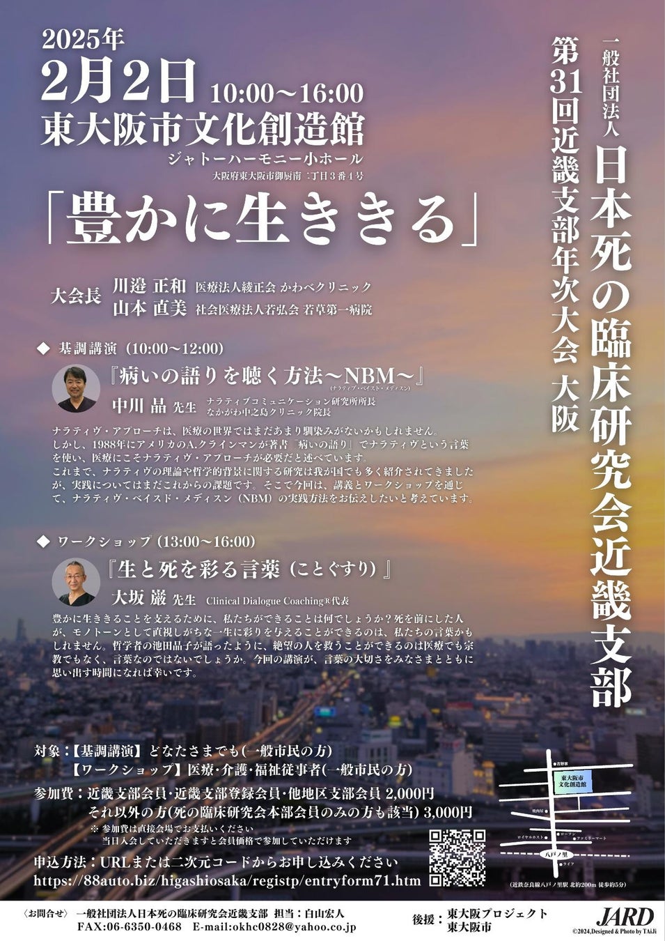 すでにメールマガジンやSNSでも報告の通り、日本死の臨床研究会 第31回近畿支部年次大会(主催:(一社)日本死の臨床研究会、後援:東大阪市、東大阪プロジェクト)の開催が迫ってきました。