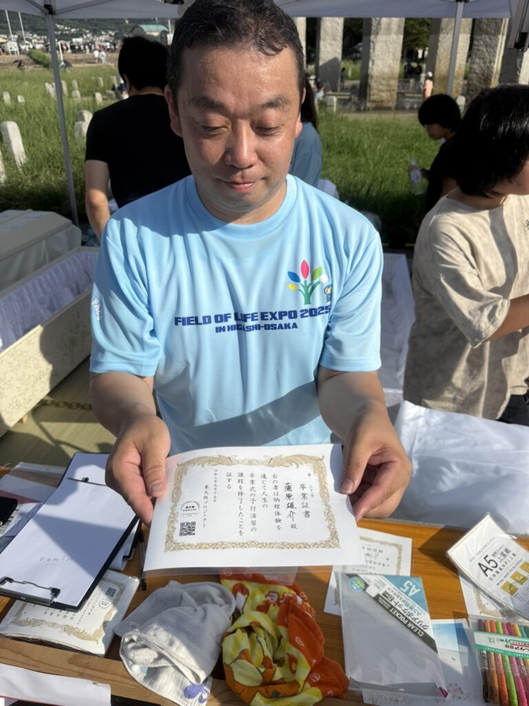 いざという時、自分の大切な人の将来や人生を考える一つのきっかけとして、非常に意味深い体験だと、自分で味わったからこそ断言できます。この日、東大阪プロジェクトのテントが並ぶ、向こうの端では胎内体験も行われています。「生と死」が絶え間なく連続してこの世は成り立っているのだと感じさせる、このメッセージ、スタジアムを訪れた多くの方が受け取ってくれたことを願います。