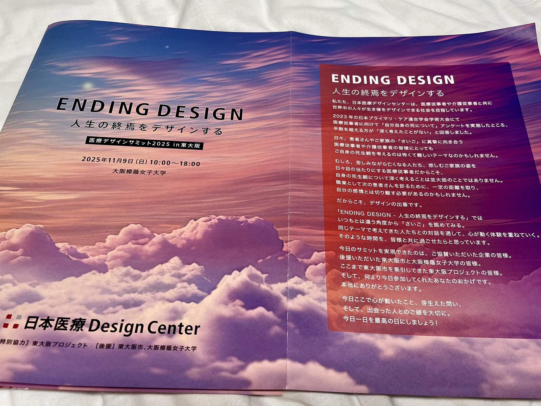 2025年11月9日、大阪樟蔭女子大学にて「医療デザインサミット2025」を開催しました。雨天にもかかわらず、会場はほぼ満席。250名以上が参加され、東大阪プロジェクトのメンバーの支えによって盛況のうちに会を終えることができました。