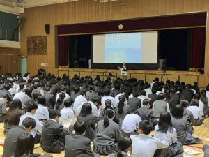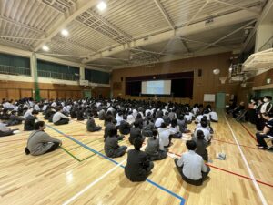 体育館に集まった生徒たちは真剣に耳を傾け、自分自身の気持ちを見つめる表情が印象的でした。
