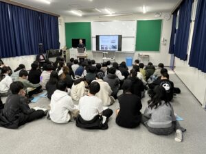 ご自身の経験をもとに、子どもたち一人ひとりの心に寄り添いながら、丁寧に語りかける授業が展開されました。子どもたちの表情からも、真剣に耳を傾けている様子がうかがえました。